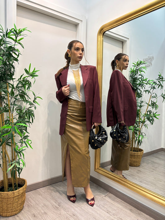 Prezzo di listino €25,00 EURPrezzo di listinoPrezzo unitario / perPrezzo scontato €25,00 EUREsauritoMinigonna in simil pelle ( verde cachi / prugna)
