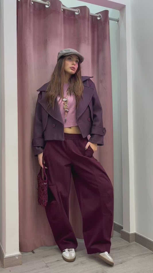 Prezzo di listino €55,00 EURPrezzo di listinoPrezzo unitario / per€65,00 EURPrezzo scontato €55,00 EURIn offertaCoat Cropped bridge prugna