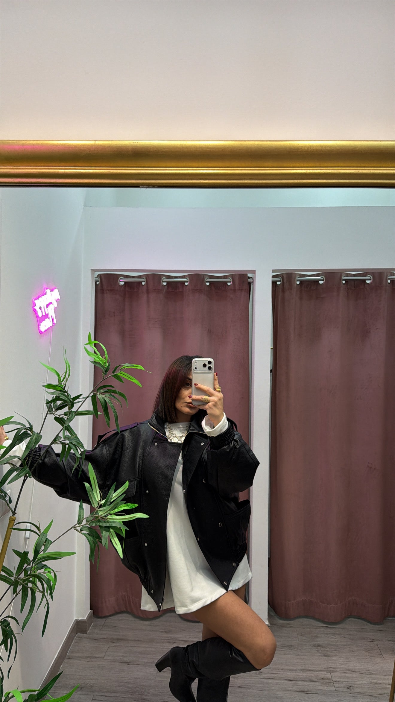 - Fondo leggermente arricciato/elasticizzato (effetto bomber reinterpretato)