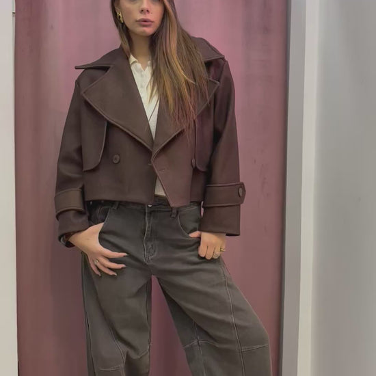 Coat Cropped bridge marrone