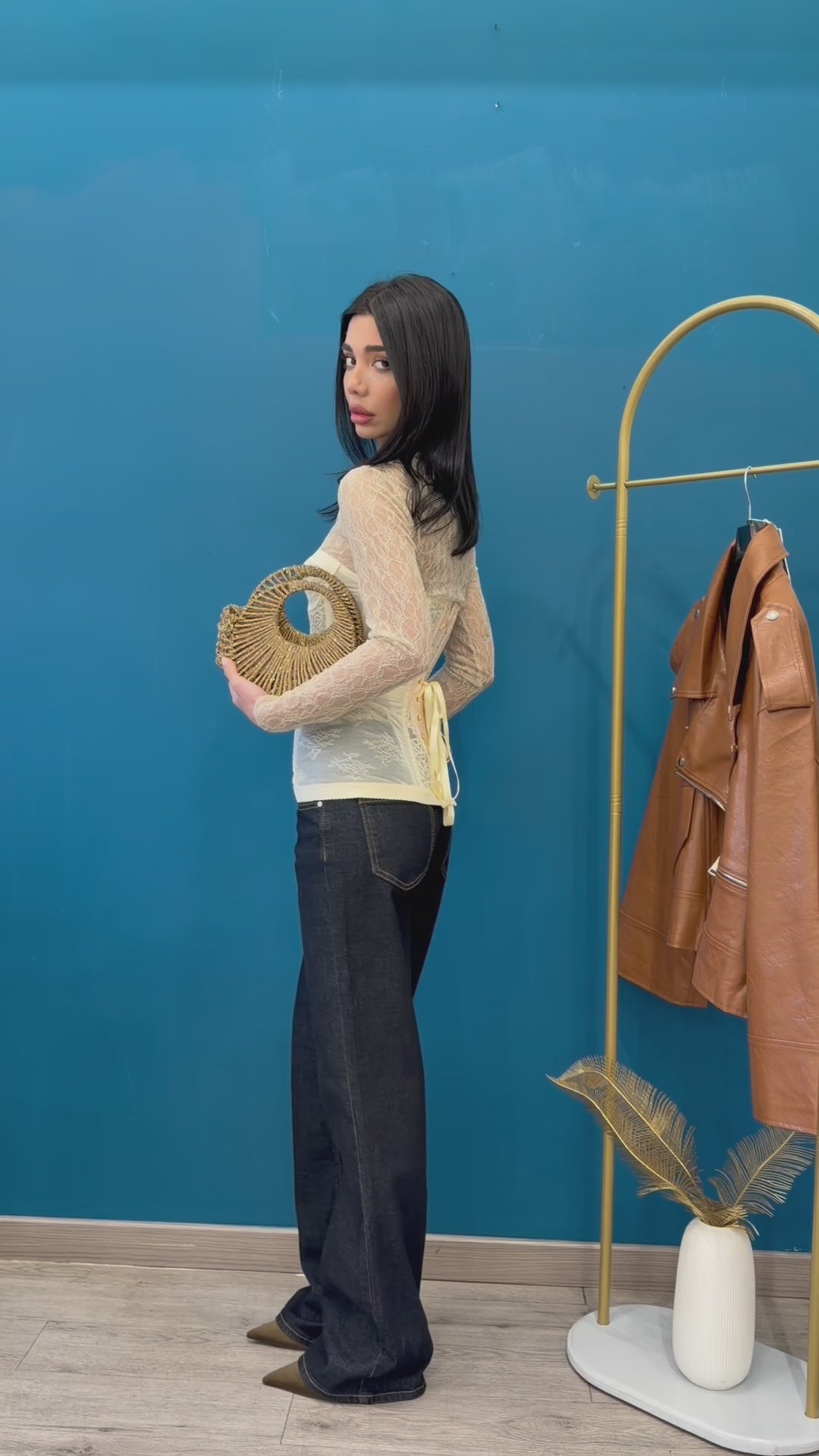 Dettaglio chiusura in avanti con ciappe gold
