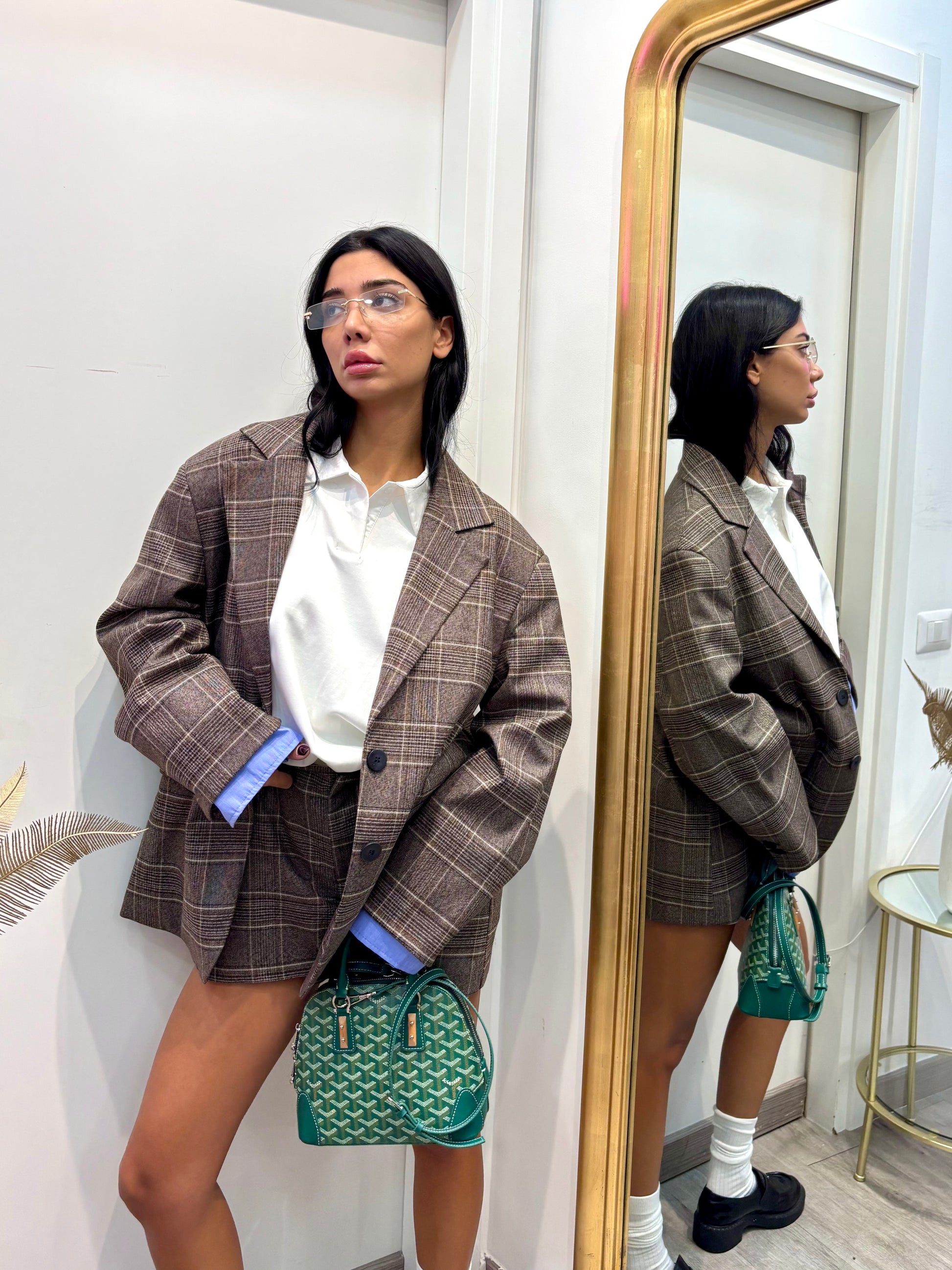 Maxi blazer a quadri lumina