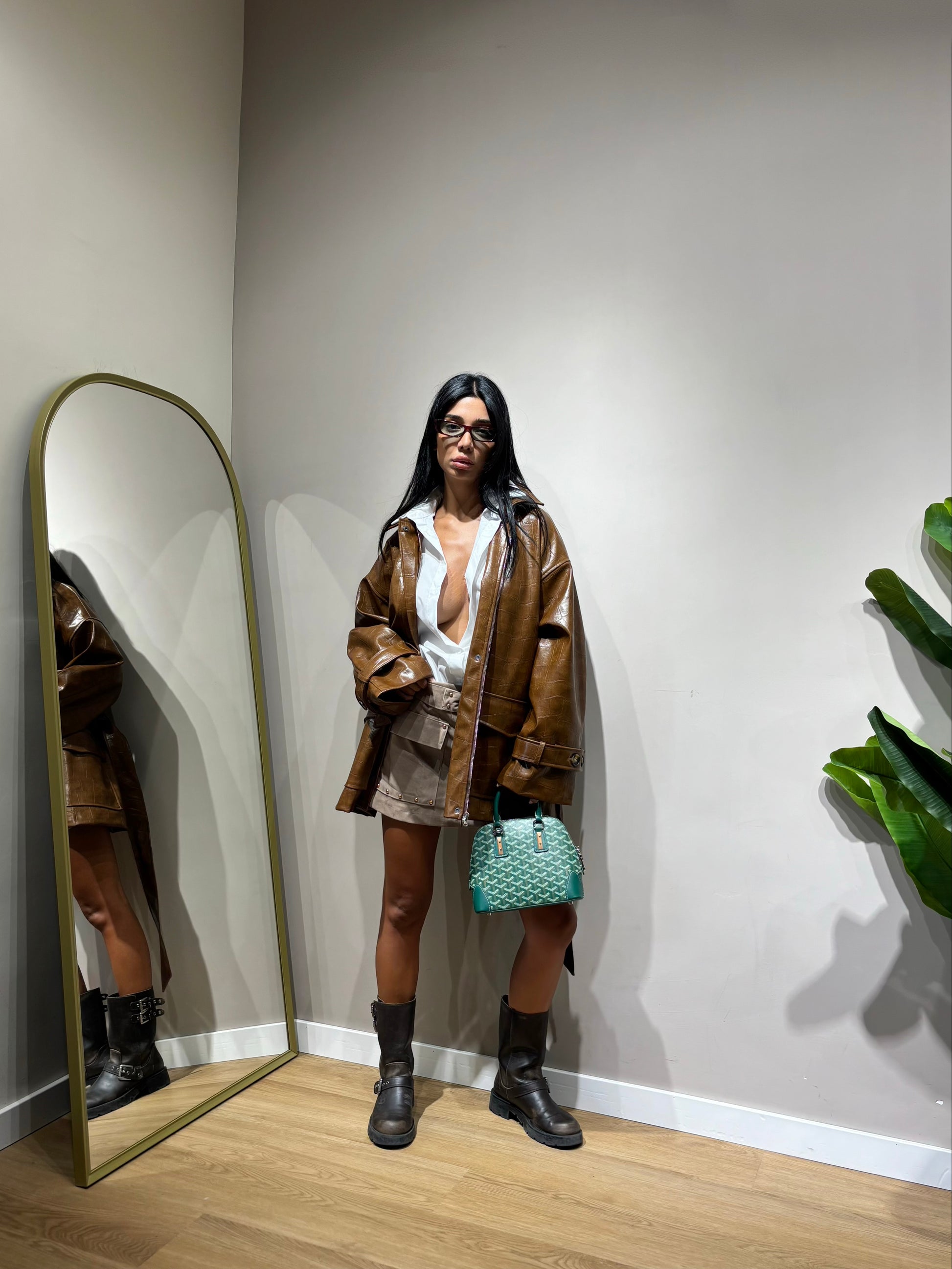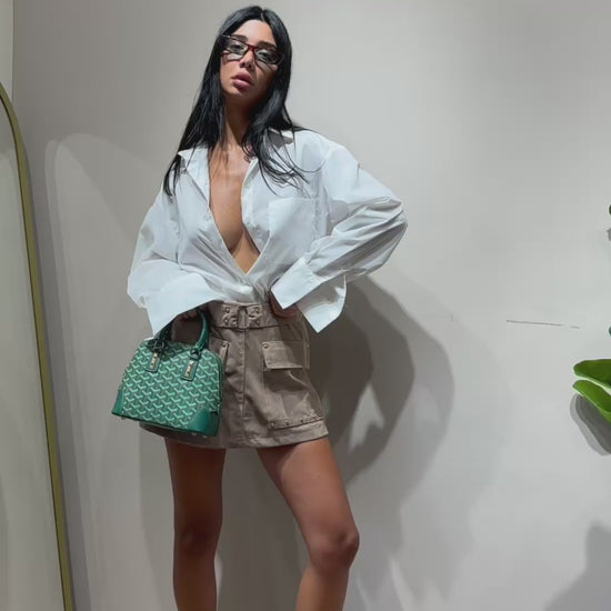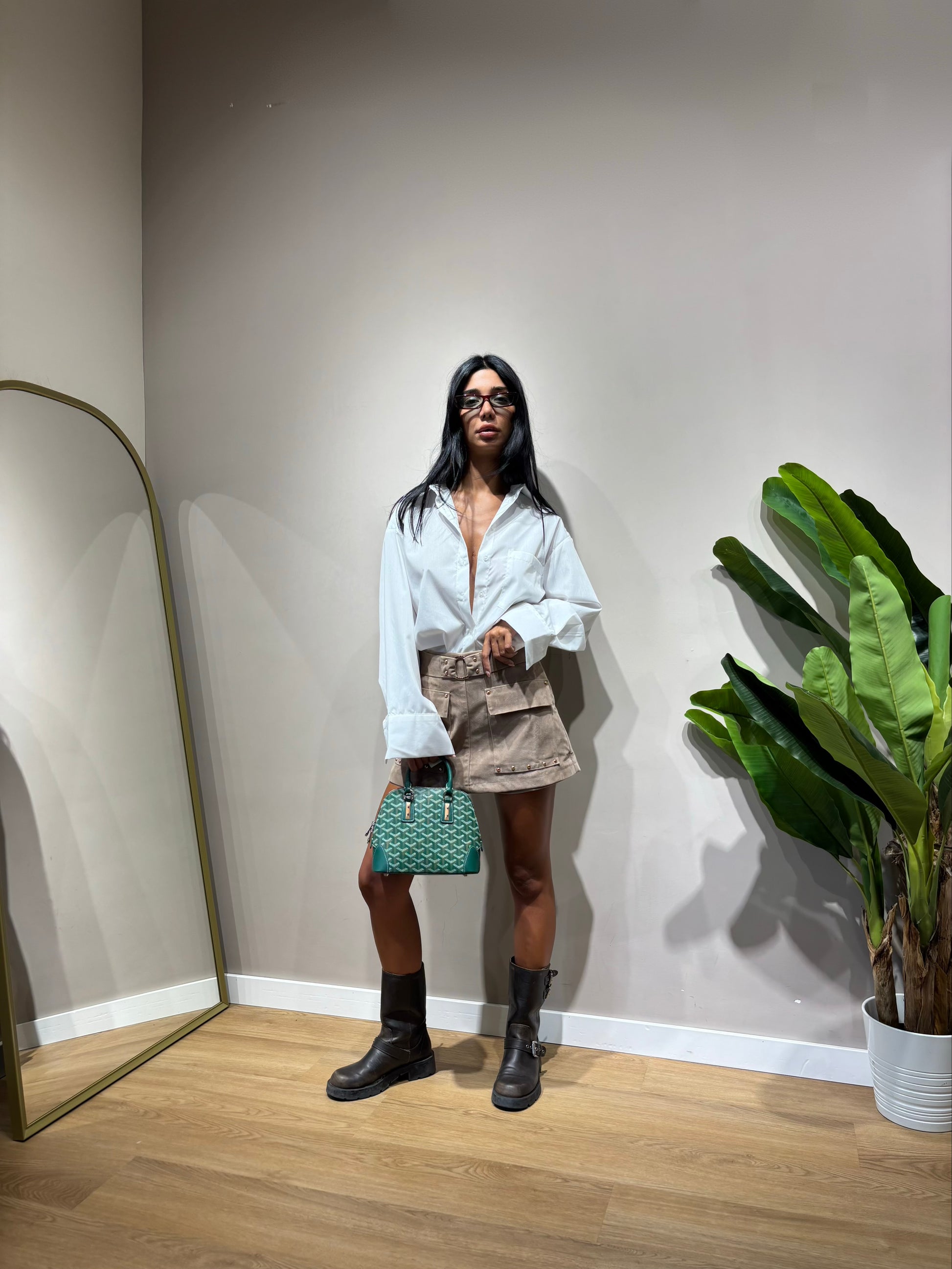 Panta gonna in suade con dettagli borchiette oro su taschini