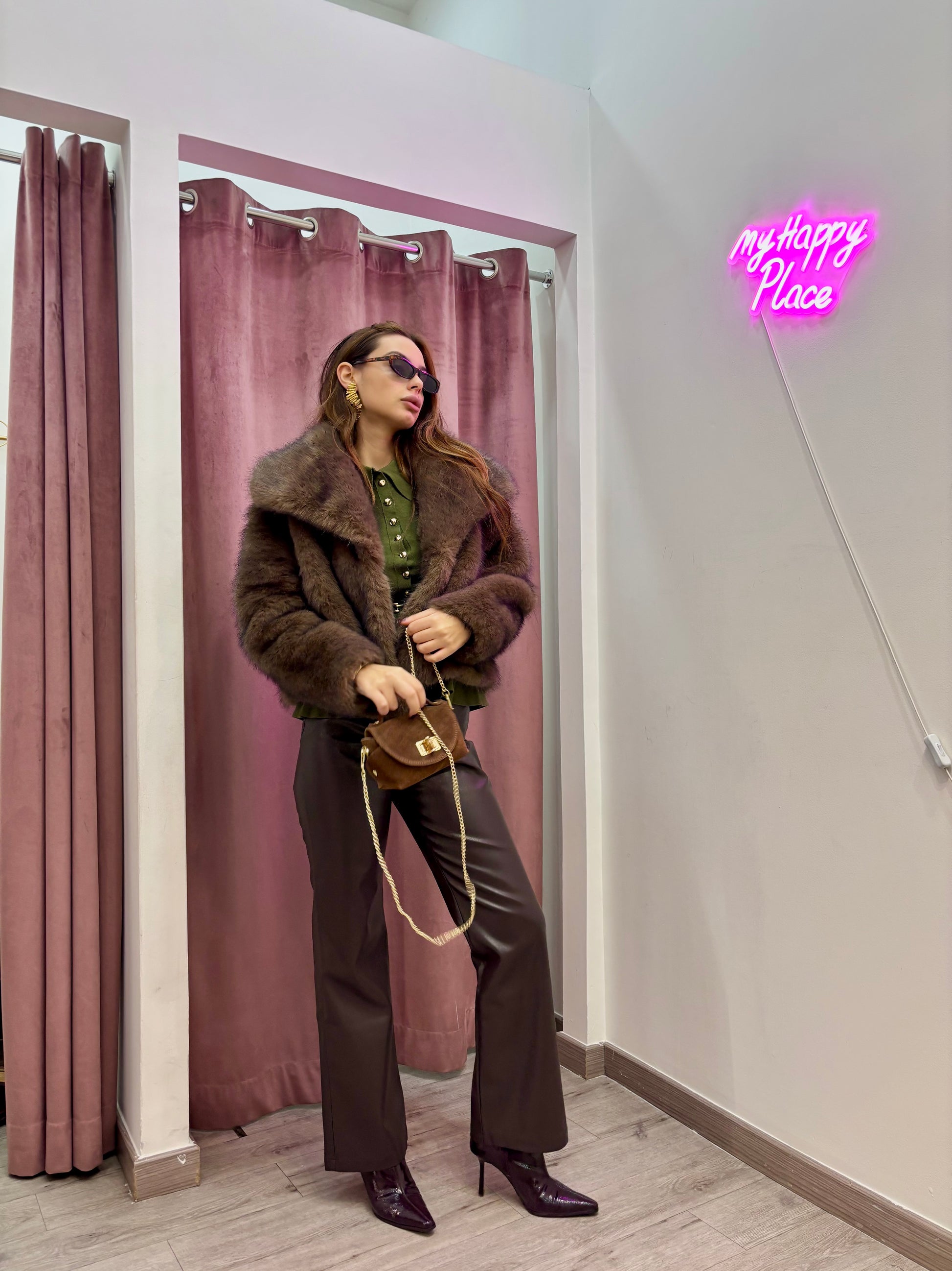 Pantaloni in ecopelle colore marrone